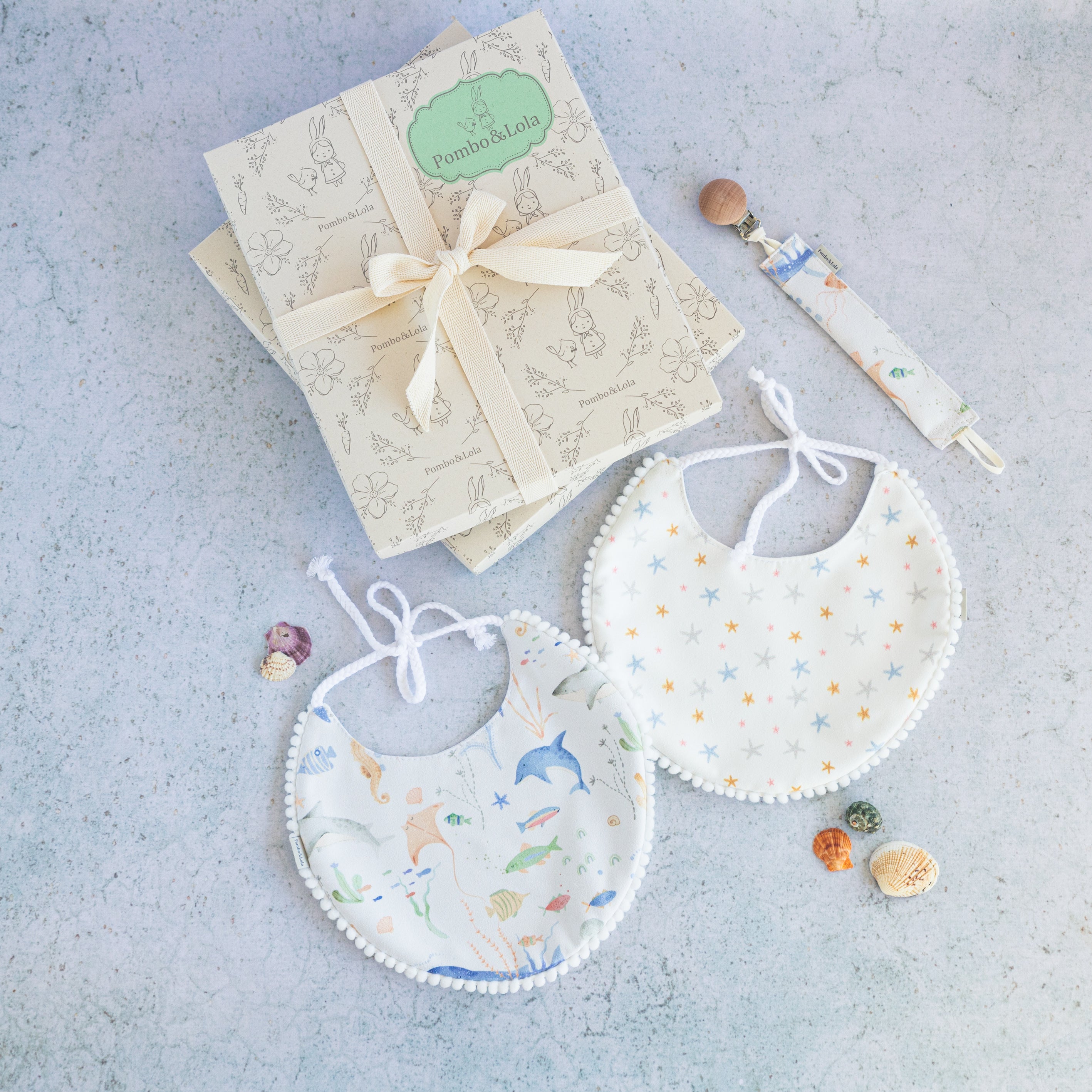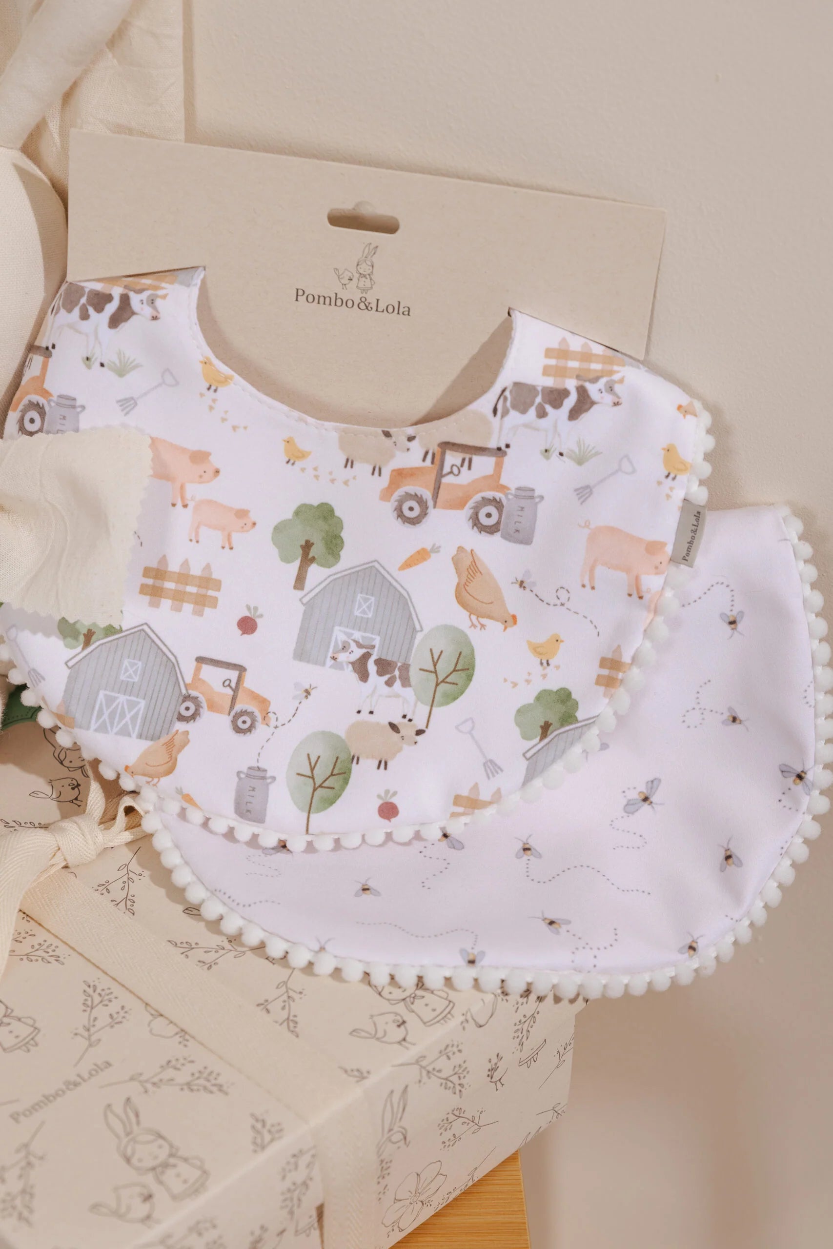 Material: Babero en microfibra y accesorios en algodón