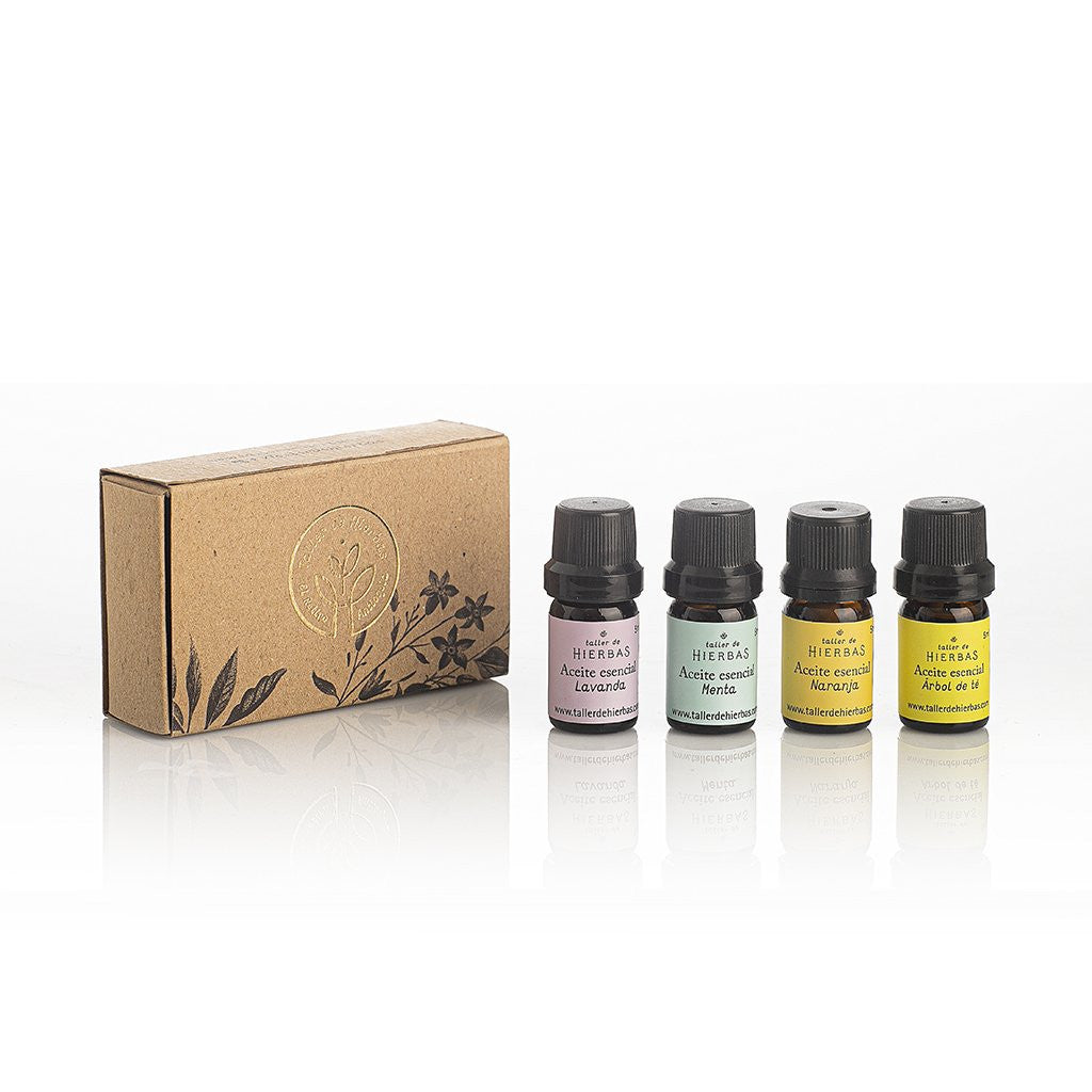 Éste kit contiene los 4 aceites esenciales básicos para comenzar en el mundo de la aromaterapia. Contiene Lavanda, menta, naranja, árbol de té y un pequeño librito con información.