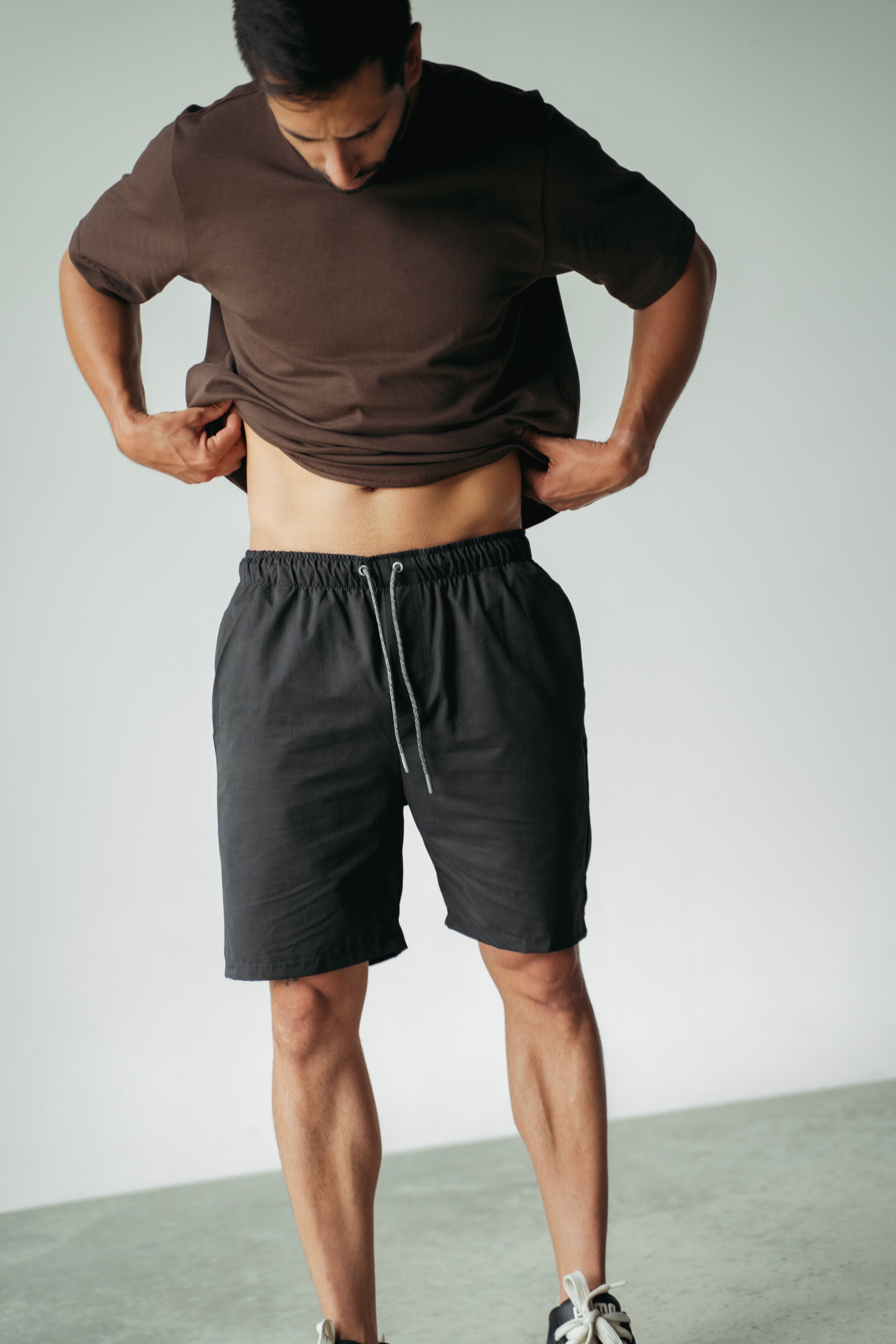 Bermuda Regular Fit Café o negra con bolsillos laterales, bolsillos en posterior, pretina enresortada y cordón ajustable. Perfecta para cualquier look!